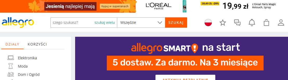 Войти в личный раздел интернет-гипермаркета, сайт allegro.pl