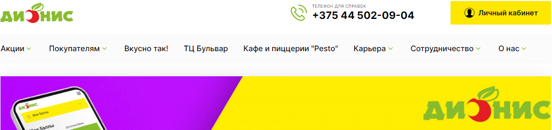 Войти в персональный раздел магазина “Дионис”, сайт dionis-shop.by