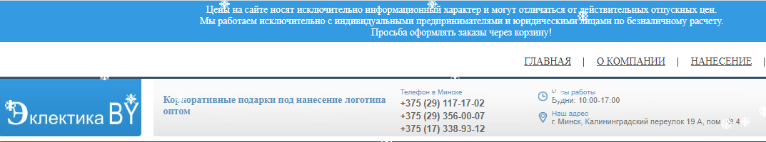 Войти в персональный раздел портала корпоративных сувениров и подарков с логотипом Электика Бай в городе Минске, сайт eklektika.by