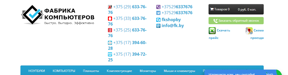 Вход на страницу интернет-магазина “Фабрика компьютеров”, здесь вам помогут подобрать ПК, мониторы, мышки, клавиатуры и т.д. Вы можете собрать именно тот комп, который вам нужен. Также вы можете приобрести новый компьютер в счет старого, больше информации на сайте fk.by