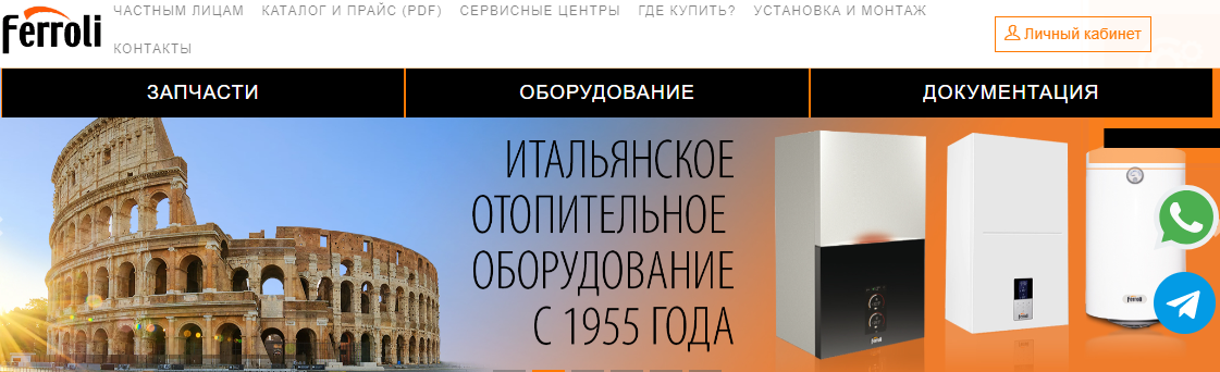 Войти в персональный раздел производителя отопительного и климатического оборудования “Ферроли”, сайт service.ferroli.by