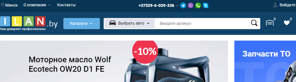 Войти в личный раздел интернет-магазина автозапчастей в Минске, сайт ilan.by