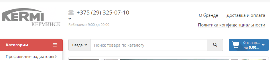 Авторизоваться в личном аккаунте интернет-магазина отопительного оборудования “Kermi”, сайт керминск.бел