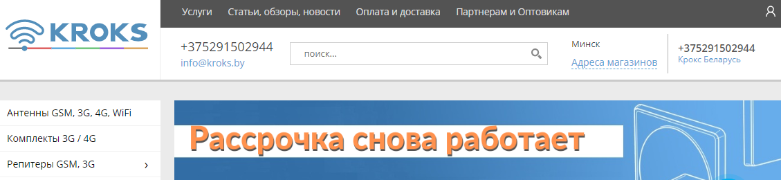 Авторизоваться в личном разделе компании по производству антенн и усилителей сигнала “Крокс”, сайт kroks.by