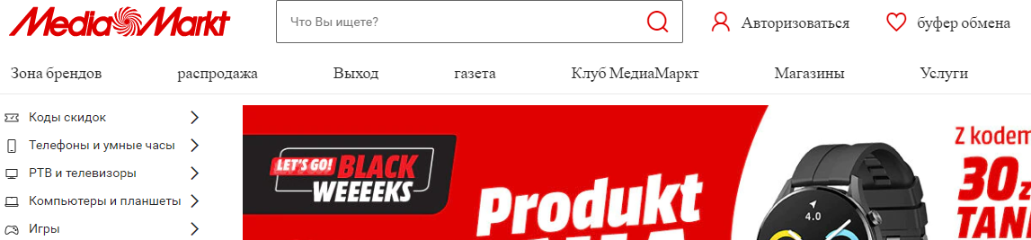 Войти на страницу интернет-магазина электроники “Медиамаркет”, сайт mediamarkt.pl