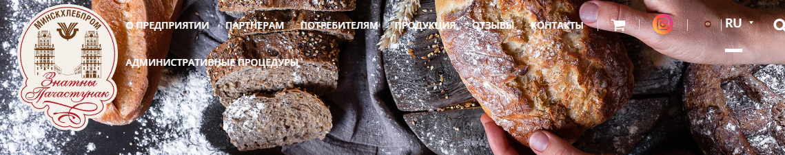 Войти на официальную страницу производителя хлеба и хлебобулочных изделий “Минскхлебпром”, сайт www.minskhleb.by