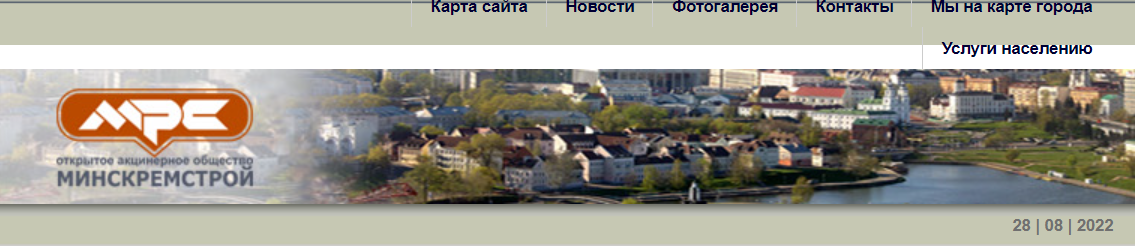 Вход на станицу крупного предприятия по ремонту жилого фонда “Минскремстрой”, сайт www.mrs.by