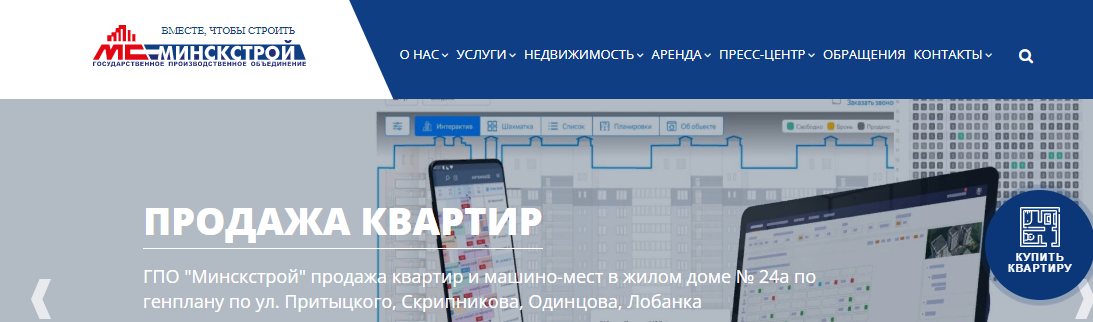 Войти на страницу крупного Белорусского застройщика “Минскстрой”, компания ведет строительные проекты начиная от составления плана вплоть до сдачи объекта в эксплуатацию, сайт minskstroy.by