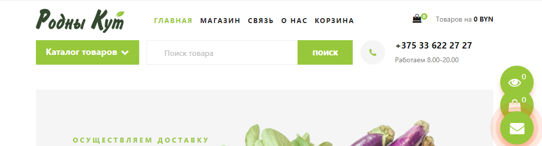 Войти на страницу интернет-магазина “Родны Кут” который осуществляет доставку качественных продуктов по всей территории Беларуси, сайт rodnykut.oblpo.by