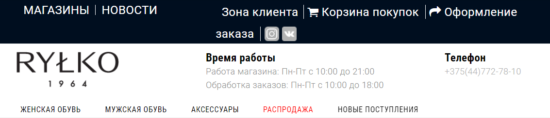 Войти в персональный раздел интернет-магазина польской обуви, в городе Минске сайт rylko-shoes.by