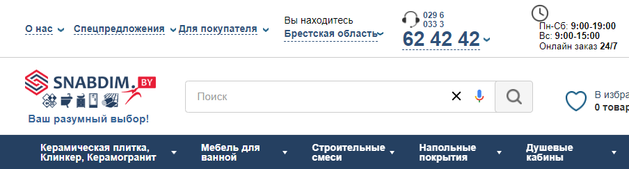 Войти в личный раздел онлайн-магазина где вы сможете приобрести сантехнику, керамическую плитку, ламинат, линолеум и т.д. “Снабдим бай” города Пинска, сайт snabdim.by